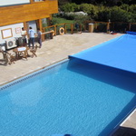 Todas nuestras cubiertas estan equipadas con una bomba especialmente diseñada para cubiertas de piscina. Esta bomba desagota automaticamente el agua de lluvia que pueda acumularse sobre la misma.