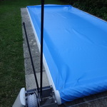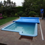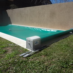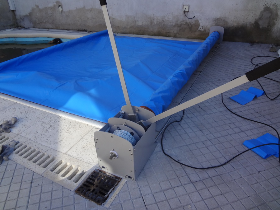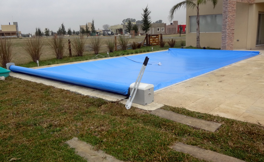 Todas nuestras cubiertas estan equipadas con una bomba especialmente diseñada para cubiertas de piscina. Esta bomba desagota automaticamente el agua de lluvia que pueda acumularse sobre la misma.
