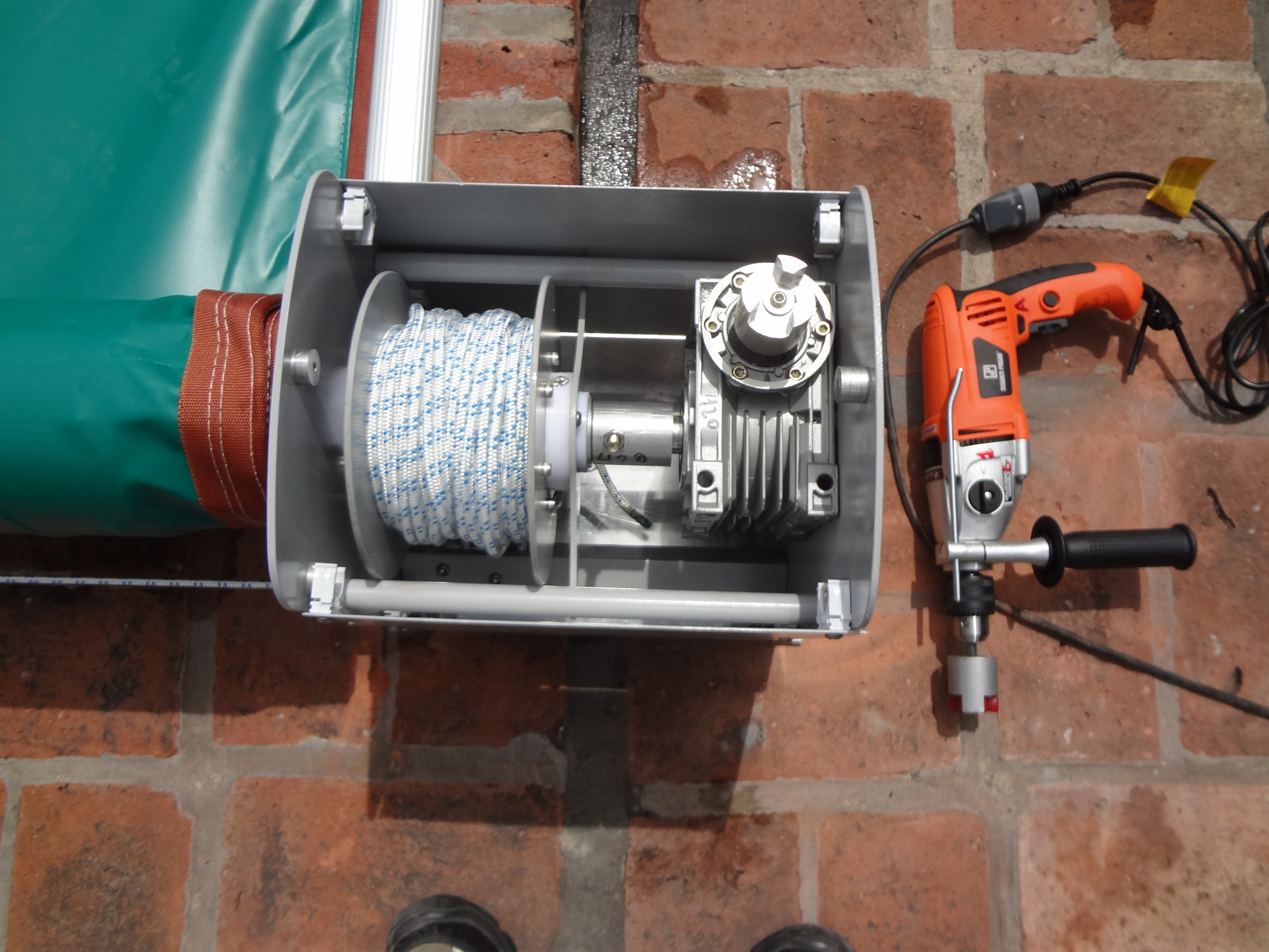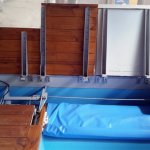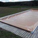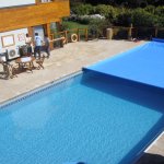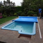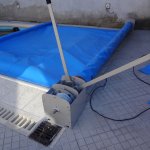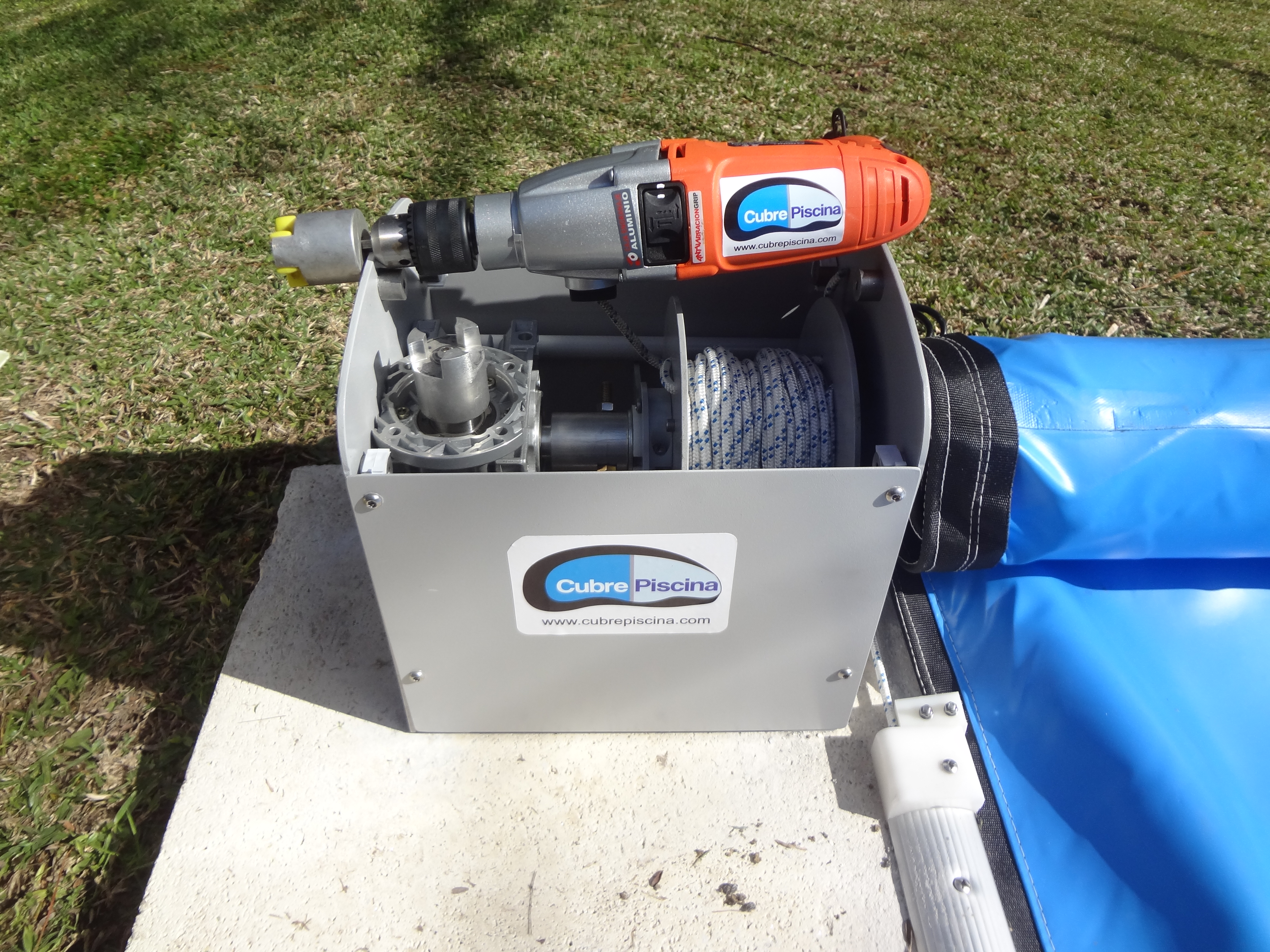 Todas nuestras cubiertas estan equipadas con una bomba especialmente diseñada para cubiertas de piscina. Esta bomba desagota automaticamente el agua de lluvia que pueda acumularse sobre la misma.