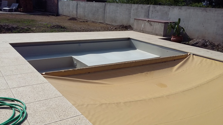 El perfil que permite el funcionamiento de la cubierta, esta diseñado especialmente para esta funcion, y su forma no estorba el normal uso de la piscina, puede pisarse sin molestias y nunca provocara golpes o heridas a los usuarios.