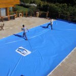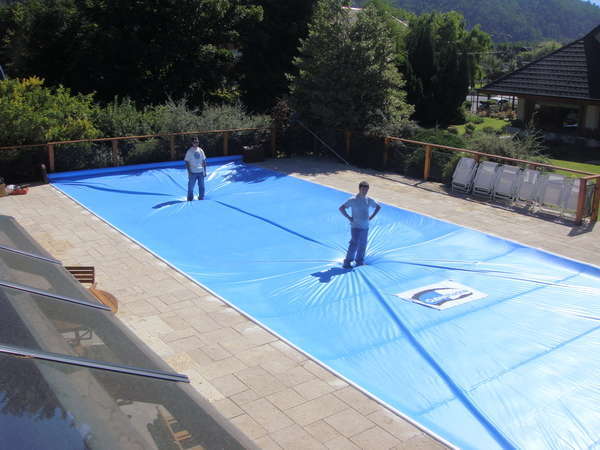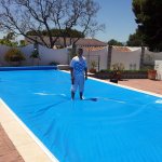 El cubrepiscina mantiene limpia su piscina protegiendola del polvo del ambiente, de la caida de hojas, ramas y otros insectos que enturbian y contaminan el agua.
